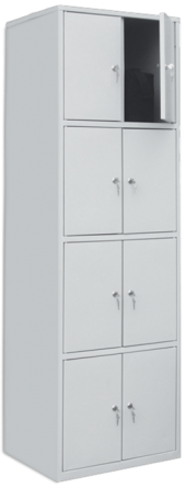 Камера хранения для вещей, сумок. Наиболее широкое применение имеет в небольших и крупных магазинах, ремонтных мастерских, раздевалках. 8-ми дверный шкаф, каждое отделение которого запирается на замок "Euro-Locks" (Польша) повышенной секретности.