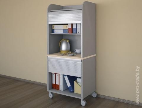 Ещё одним оригинальным решением коллекции «Кредо» является применение ролет вместо обычных дверей для стеллажей и контейнеров. Этот функциональный и необычный элемент экономит пространство, придаёт современный стиль Вашему офису.